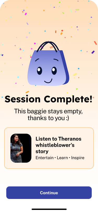 But we also need to take responsibility for developing extrinsic reward dependencies within users in their behavior change. Should the extrinsic motivation be removed, would we have impacted their life in any positive, lasting way? Our main focus thus became trying to make the “reward” element as intrinsically grounded as possible. So we reframed our rewards design to strengthen users’ sense of self, to a point where they feel strong enough to move away from online shopping as a mental crutch.