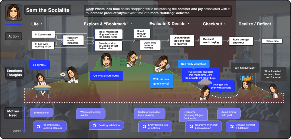 Personas have traditionally been a “step in the design process” I had to get out of the way despite already knowing the gist of the user I’m designing for. However, in this class, I explored using Bitmojis to make a persona’s journey feel real and was able to find empathy within myself to truly design for them.