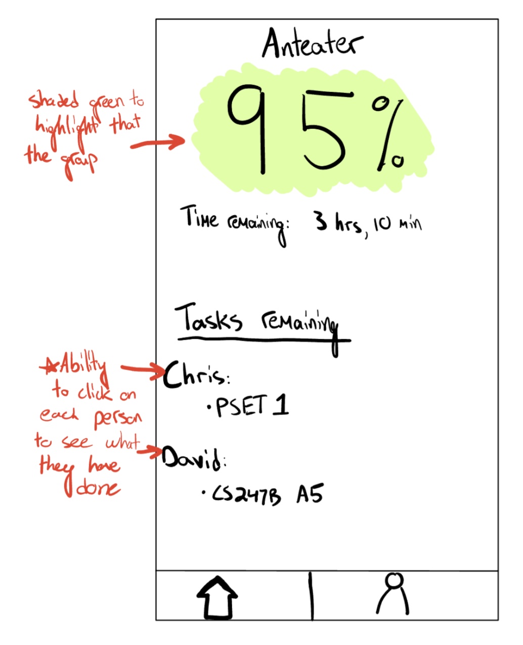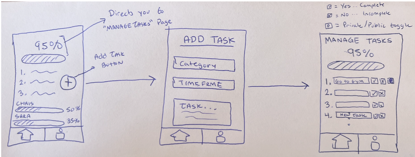 - Could see how well they’re performing in comparison to their friends. Furthermore, could learn more about their friends’ public goals/tasks to 1) hold them accountable 2) see if there’s any overlap or 3) provide support — or just be nosy. Last Minute Larry will be motivated by seeing other people’s progress.