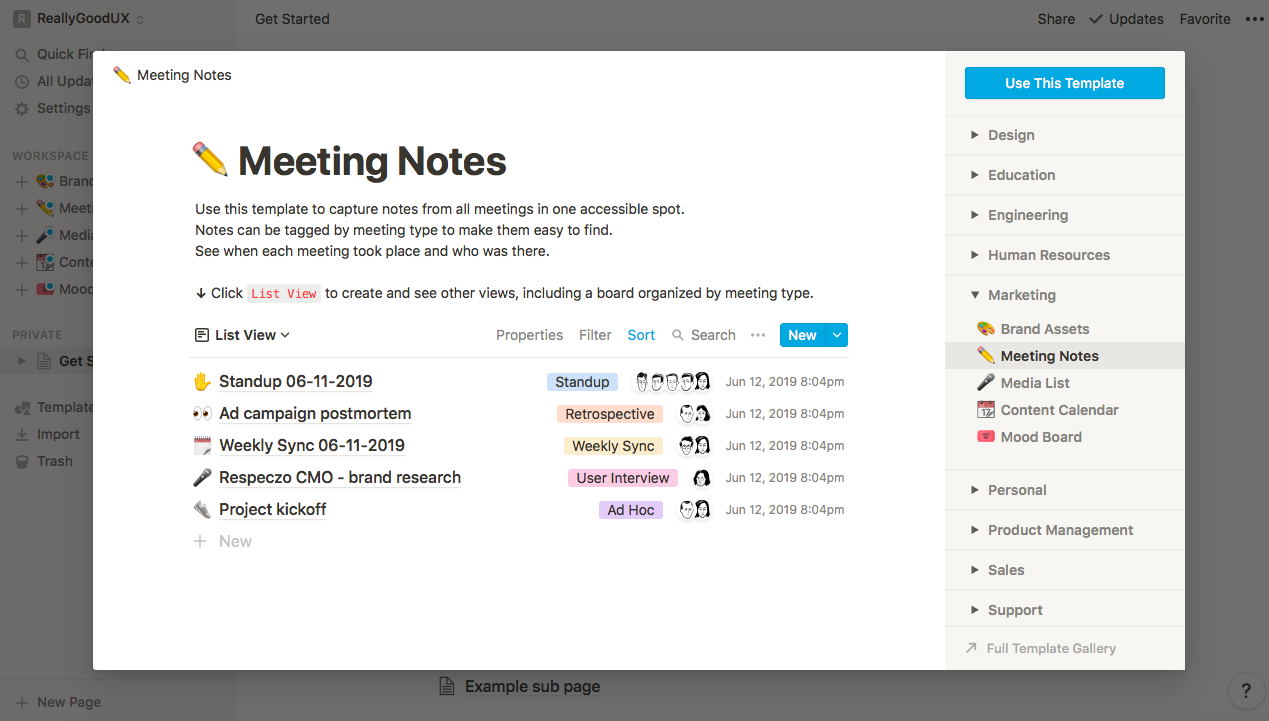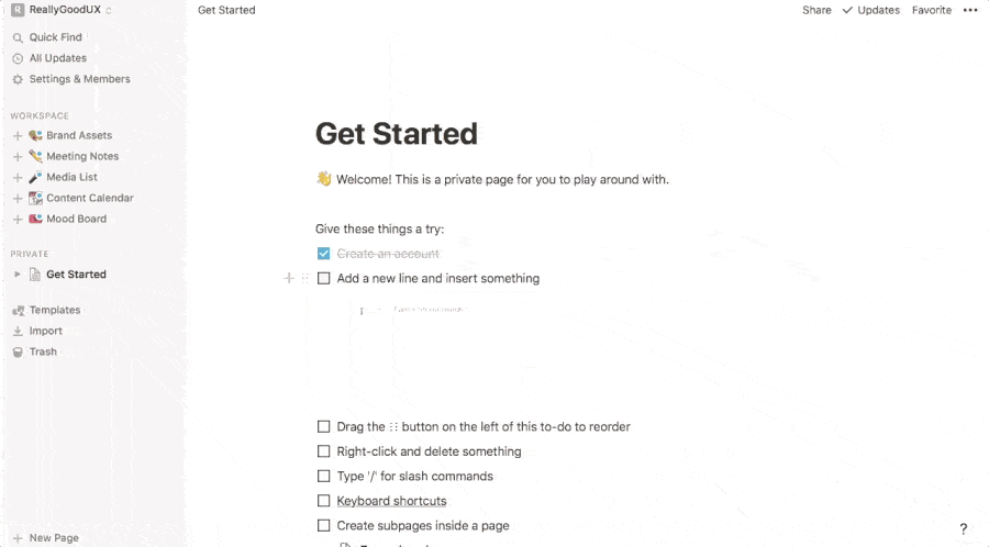 Figure 2. Notion’s “Get Started” checklist (2018)