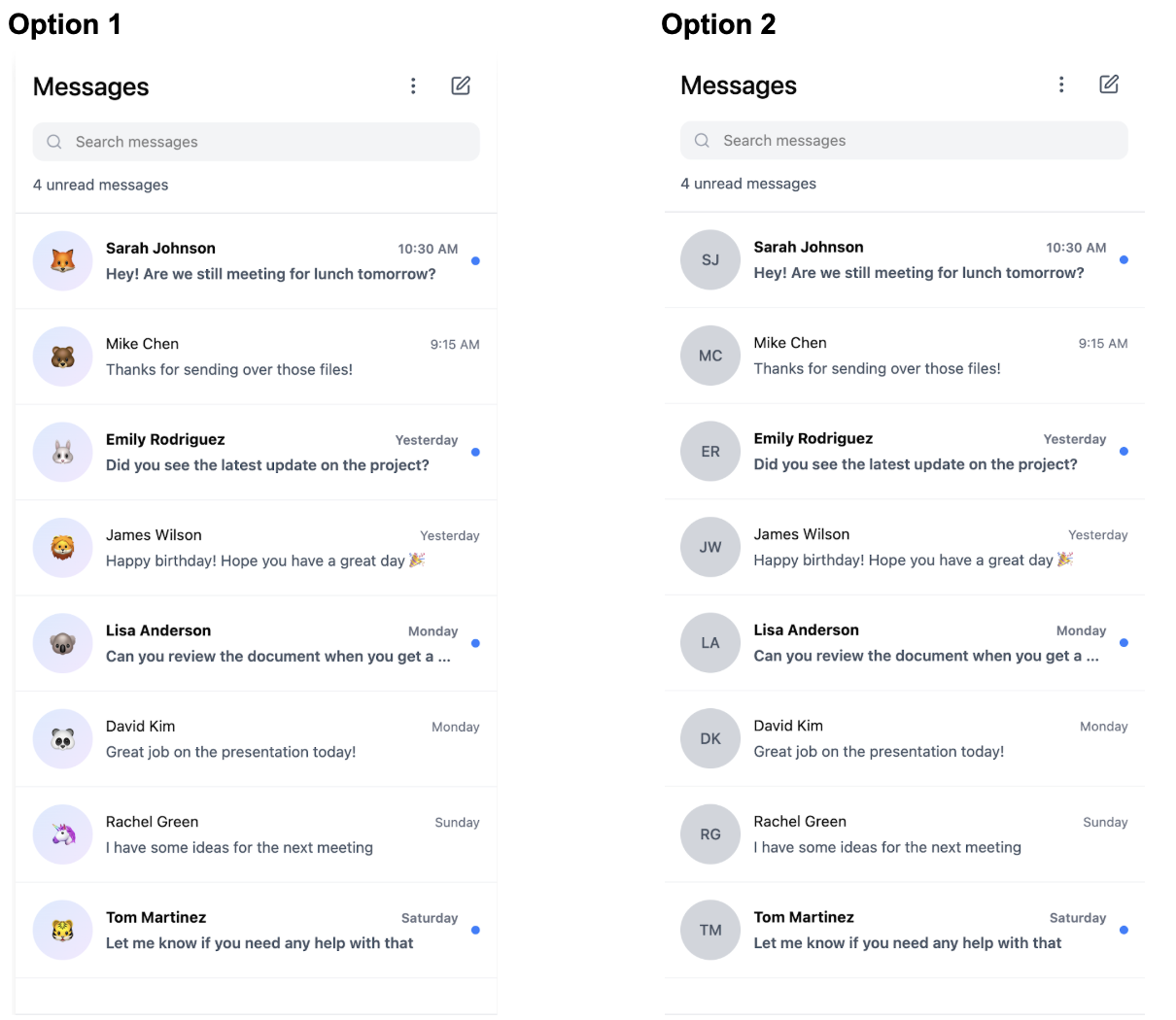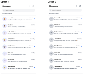 In this test, we attempted to figure out whether people are more responsive on messaging platforms that use avatars. To test this, we mocked up two messaging screens, which were identical except for the fact that the first had avatar icons and the second did not. We then presented this to participants, who rated which screen they would be more likely to respond to messages on. We once again recruited participants from different dorm lounges, which helped us make sure that the participants had diverse visual preferences.