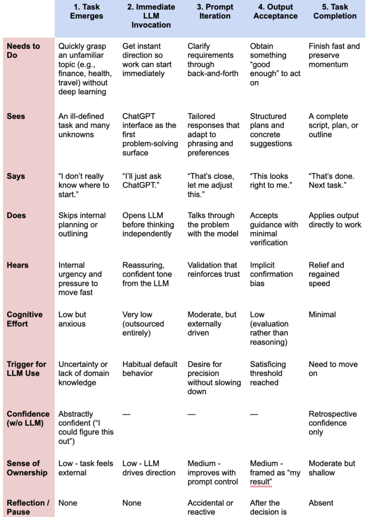Jordan’s journey shows that over-reliance is front-loaded. Once the LLM is opened, the opportunity for independent problem framing has already passed.