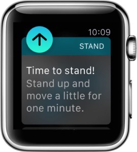 The Stand Reminder is a default feature included on all Apple WatchOS devices with the goal of combating sedentary lifestyles. Remaining stationary for long periods of time have been found to have negative consequences on one’s health, which is one of the underlying motivations for the creation of Apple’s stand reminder feature. Within the 50th minute of every passing hour, if the user has remained seated for that duration of time, the Apple Watch device sends a notification prompting the user to move about for a minimum of one minute. If the user does stand up during that moment, they are then greeted with another notification commending them for making progr