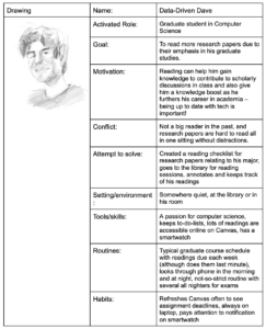 We selected DDD (Data Driven Dave) and FBBB (Find Better Book Brooke) as they represent two core motivations for reading: knowledge-driven reading and leisure reading to replace unproductive habits. DDD prioritizes academic success, leveraging structured habits like to-do lists and deadline tracking, while FBBB seeks relaxation but struggles with digital distractions.