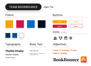 Our team chose the style above based on key elements from our synthesized moodboard. The color palette features warm tones contrasted with darker shades, adding boldness to the brand, as seen in the logo on the bottom right. Our typography blends modern and antique elements from the moodboard, using Playfair Display for headings and Montserrat for body text. This combination emphasizes the literary feel while maintaining a “new tech” edge with its readability and clean lines. Throughout our brainstorming, we’ve focused on aesthetics and ambiance over clutter or complexity, which will be a key differentiator for our app. This approach is reflected in the design with clear, bold lines and colors, rather than muted, antique tones. For the home screen, we envisioned ambient light effects, like candles or floating bubbles, to invite users to sit back, relax, and enjoy a good read.