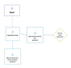 These wireflows implement a simple and intuitive flow so there are no extraneous screens or buttons that might confuse a user. This entails a page for registration, a login page, and a mechanism for checking whether the login is correct. If so, the flow continues to the homescreen, if not, an error message will occur.