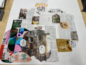 Our synthesized moodboard was a collaborative effort in class, where we each selected and assembled scraps from magazines, cutting or tearing them out before gluing them together. What makes this moodboard unique is how it reflects our individual perspectives while tying together our sketches and ideas. The magazines we prioritized, mainly bold, artistic, and text-heavy pieces from The New Yorker, set the foundation. One member used text as an artistic backdrop, reflecting the vintage atmosphere of reading. Another chose bold, colorful images and cartoon sketches, and a third focused on realistic photos capturing a cozy, book-filled evening. Despite these differences, we balanced each style, creating a moodboard that felt cohesive. The result embodies the essence of our app: diverse (blending modern, vintage, and classic elements), enriching (with clusters of text, particularly inspired by The New Yorker), and warm (a welcoming invitation to settle in with a good book).