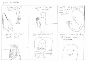 Users have to read for a discrete chunk of time (say, 10 minutes) before they are able to open any social media app like TikTok or Instagram.