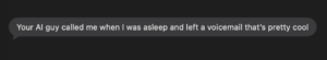 Although we had not programmed it directly to do so, the AI, to our surprise, gained an ability to leave voicemails: