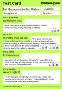 These are the three assumptions that we decided to test, and therefore the test cards are built accordingly to test these quickly and provide the necessary feedback.