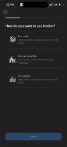 Instagram, on the other hand, asked me very few questions. It did not offer SSO as Meta wants to have their own Facebook/Meta account, but the questions were quick. As soon as I entered my username, I was offered to link my existing Meta account (see attached). After I declined, I just had to enter a password and either my phone or email. Overall, this process felt slow, and I did not know how many more steps it would take, as there were no progress indicators. I did like the account linking feature, though. I received an OTP on my phone, and then I was on Instagram. Overall, I felt like notion was easier.