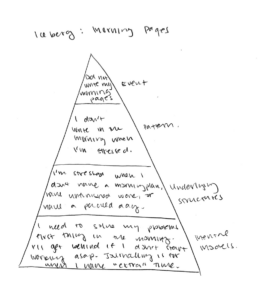 Whether or not I write in the morning looks like a result of random chance, but is actually the result of whether or not I have “made time” in the morning to write. If I don’t know my morning schedule, I will add things in (e.g., going to the farmer’s market with my friend) and remove my writing time. Alternatively, as was the case on Day 2, my morning schedule shifted—I was supposed to go to the gym with my friend and I didn’t—so suddenly I had time and “gave” it to my morning pages. I think of myself as a very organized person, so it was surprising to realize that my mornings are often actually unstructured. I also noted myself waking up with a particular emotion (e.g., stressed or in control) and making decisions based on that emotion. Based on my behavior, it is clear that although I think writing is a priority, when I have work or other activities, it quickly becomes deprioritized.