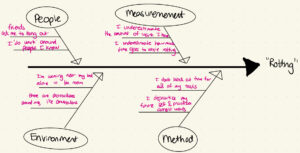 Below, I’ve drawn a fish diagram to dissect four major causes of rotting, including people, measurement, environment, and method.