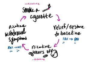 The feedback loop made me realize how nicotine addiction is living your life craving something that makes you feel less without it. Having a nicotine addiction makes cigarettes a subscription box to relief from a capitalistic disease. Next time, I would like to focus on how I feel while being mindful of how much I am smoking. I think centering myself and my feelings would help free me from the addiction cycle feedback loop.