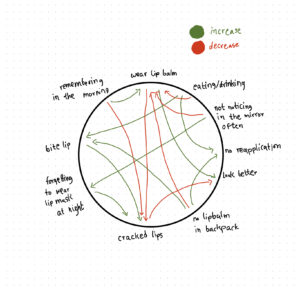 For this activity, I wanted to wear lip balm more. I have pretty dry lips but often fall short of wearing lip balm and so I wanted to understand this behavior by documenting my experience and some guidelines for myself to do it better next time.