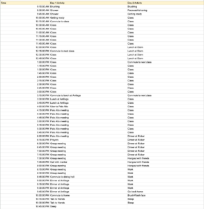 I measured myself across two weekdays because weekdays most accurately represents the majority of my year.