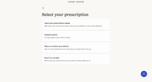 Figure 3. Warby Parker’s checkout prompts users to create an account and enter custom details such as prescription, ensuring the right fit