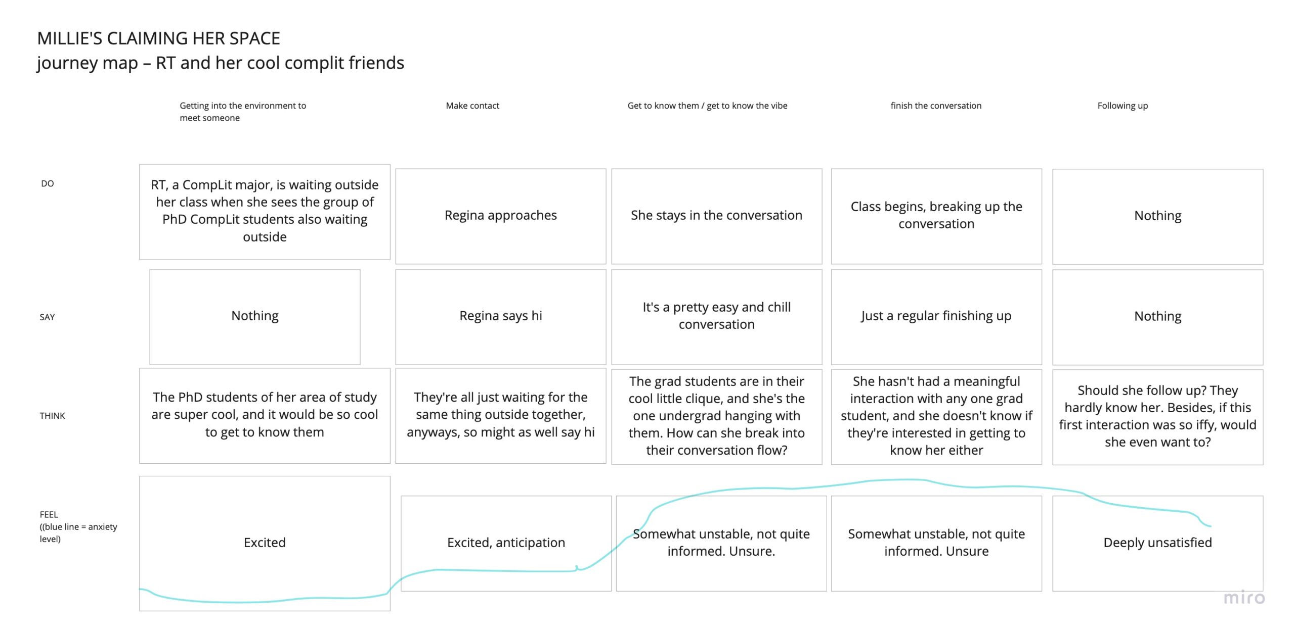 | Setting/ Environment | Setting is in class, dining hall, or serendipitously wherever I’m working (eg Tresidder).