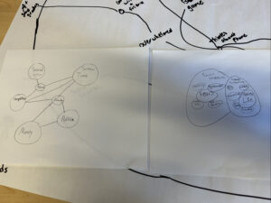 These bubble maps were created in order to help connect the different aspects of our app together. For the map on the left, the bubbles were scaled based on the importance of the word. Screen time and money are the most important aspects of the app because users participate in a competition centered around screen time and they must be willing to put money on the line. The money connects to politics and donating because the money at stake is money that will be donated to the opposite political party. The other words in the bubble map are words that carry significance and are key areas to be focused on when we work on the design implementation of our app. We need to consider how each of these different aspects can be implemented in different ways and identify which way will best fit our users to have the best experience.