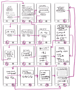 In our synthesized wireframe, we combined our screens into two distinct categories. One section for users who want to study independently and one if they want to compete with friends to foster this competitive atmosphere. Like most flows explain above in the individual panels, the arrows in the image above shows a general flow of how users will use the app (of course there are many things still missing, but since this is the initial iteration, we wanted to keep in the main components of the app). So the general flow was separated into two sections and we came to this conclusion after some talk about having the users journey be as simple as it can be since they’re on this app for one reason and that reason is to focus and get work done. Any other unnecessary hoops or barriers are inhibiting factors as that would just distract the user more and may even become frustrated when using the app–which is something we’re not aiming to do.