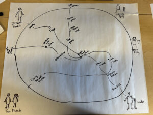 For our system map, we started by identifying some of our personas that were identified during our study and testing period. With these personas, we were able to focus on the different day to day activities that they perform and how one action leads to another. Ultimately, we identified paths that some of our personas could take to lead them to relative success. For the golfer, performing well and winning money is the goal, and for the distracted student and our other personas, doing well in school and earning good grades is important. As one can see in the map, we were able to identify ways that these people can reach their goals. Competing with a friend and stopping phone usage were some of the key needs we found in order for our users to be able to reach their goals. With this in mind, we can focus our design implementation to ensure that these tasks are completed in order to reach one’s goals.