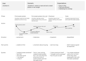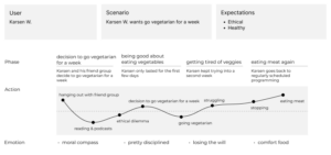 brief description/explanation of above: Jonathan’s journey map and proto-persona are about a specific vegetable and the expansion of his palette, whereas Karsen’s are about his attempt to go vegetarian for a week as well as his dissatisfaction with Stanford dining halls.