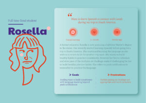 I compiled insights gathered from Rosella’s trip to South America, documenting anecdotes that shed light on her typical day while traveling. These anecdotes highlighted moments of learning opportunities and instances of frustration she encountered along the way. In response to her experiences, I proposed initial solutions to address her challenges and identified potential intervention opportunities for each emotional state she encountered.