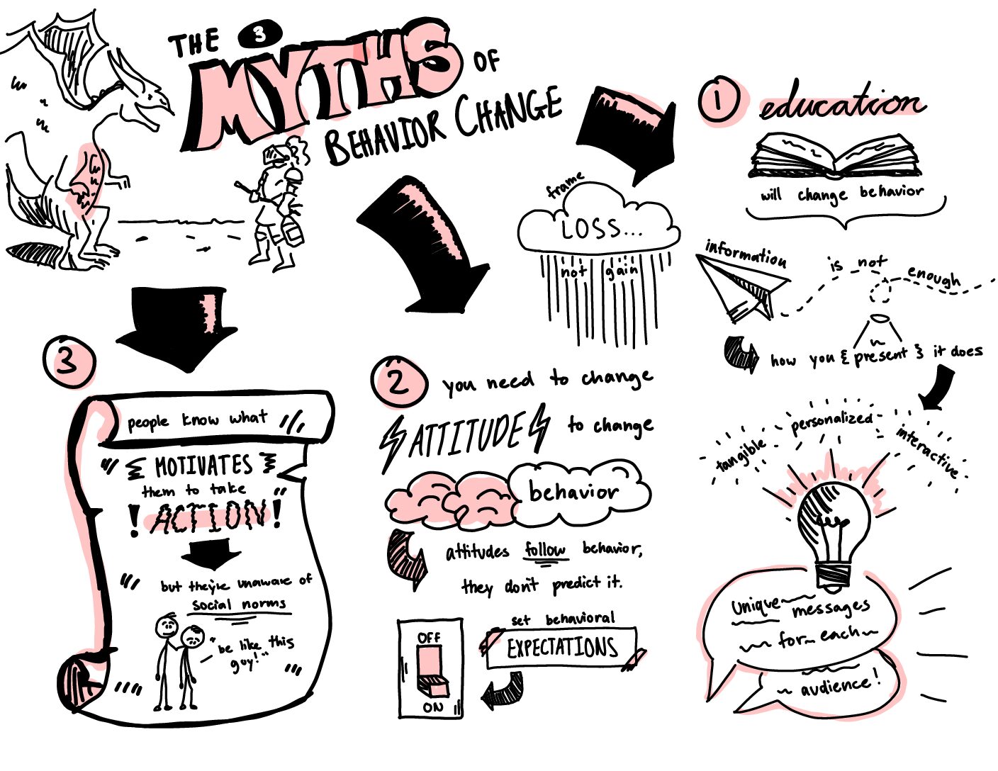 Sketchnote: Three Myths of Behavior Change by Jennifer Quach | Posted on February 24, 2025 Sketchnote Myths