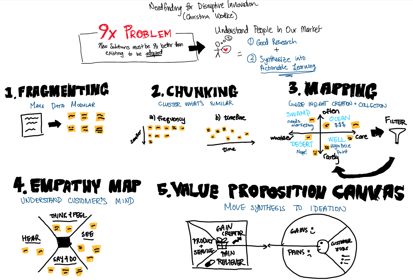Sketchnotes: Synthesis & Sensemaking by natashao | Posted on January 23, 2022January 23, 2022 sketchnotes part 1 on needfinding for disruptive innovation sketchnotes part 2 on ideation sprints for new products and services sketchnotes part 3 on sprinting from story to offering