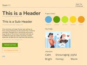 We combined elements of all our style tiles together for our final style tile, which uses Earth tones to create a joyful and bright style, which is simultaneously homey and warm.