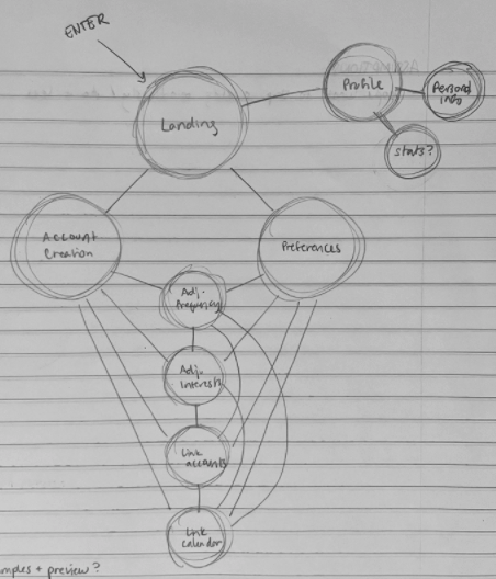 Our bubble map highlights the main areas of our solution. The three most important aspects for our product to succeed are the landing page, where people learn about our product, the account creation process, and the preferences set up. While the other features are important, we believe these three to be the most important to set up.