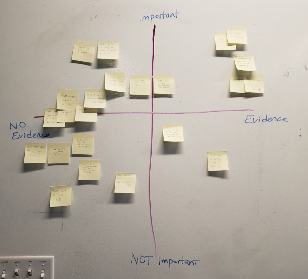 Below you will find pictures of our assumptions mapped onto a 2×2 of importance vs amount of evidence.