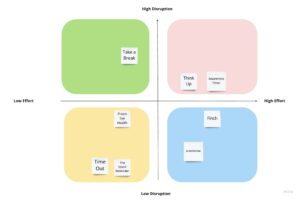 This matrix allowed us to narrow our focus to the low effort, low disruption quadrant, as our goal is to create a product that streamlines the break-taking process by seamlessly integrating into users’ existing workflows with manageable, realistic actions.