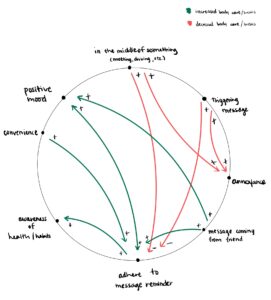 We then used our time map to create a connection circle showing the cause and effect relationships between different behaviors/habits.