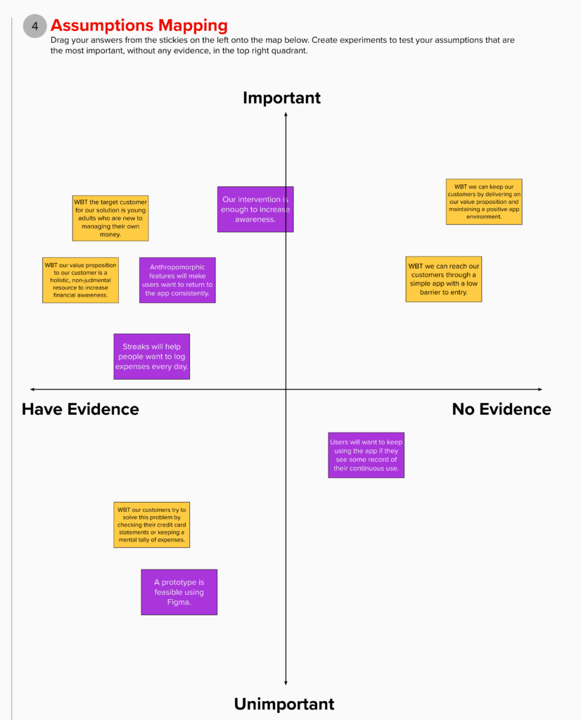 Feasibility and viability assumptions: irrelevant for our team, as we are working with a prototype with no current marketing plans. But we include a few other assumptions here.