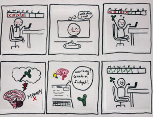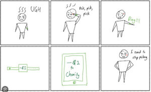 - Luke, with the help of their computer reminder enabling habit formation, uses their fidget spinner every day at their desk, reducing the amount of time they spend picking at their face.
