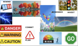 I chose bright colors because our intervention focus on alerting people that their texts/behaviors would lead to severe consequences and outcomes. For example, the red, orange, and yellow are aligned with the vibe of our intervention because they caution people against making rash decisions and plans without fully committing to them. Moreover, the bright colors in the score board and traffic light also symbolize an intervention strategy that asks people to pause and reflect before they proceed to agreeing on something that they would end up forgetting or regretting. The colors in the rainbow, butterfly, and the trees again echo the sentiment that people should be wary of what they say to other people and be as specific as possible about their plans.