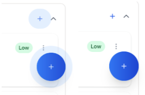 - It is now enlarged and pulsates. There is a blue ring that grows from the button every 1-2 seconds. This rhythmic design choice serves as a dynamic visual cue that naturally guides users to initiate task entry with minimal friction.