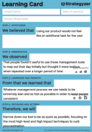 Our Usability Testing Script can be found in the previous link. Please navigate to the document to get access to the full script we asked during our usability testing. Through this script, we intend to receive real time feedback on how engaging and empowering our design is for supporting productivity. The key questions we asked are as follows: