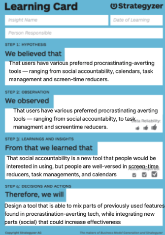 - There seems to be a connection between procrastination and the sense of urgency that comes from working under pressure. Some students rely on this adrenaline rush to push them into action, which makes procrastination feel like an effective, if stressful, approach to work. This realization led us to think about how we could make not procrastinating just as engaging. If procrastination is thrilling because of the last-minute intensity, could we design a system that makes completing tasks ahead of time feel just as rewarding?