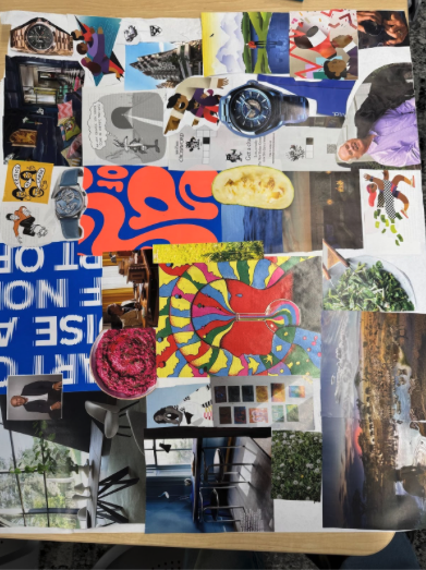 Our mood board conveys a playful, fun, and productive vibe through bright, lively images. It features visuals of people who appear engaged, successful, and productive, reinforcing our theme of productivity. While the board includes a variety of colors, blue is the most prominent. As a team, we chose blue because it evokes a sense of productivity while still maintaining a playful and inviting feel. Overall, we have many playful images and professional images that come together to set the mood for a Playful, Sleek, Straightforward, and Professional design.