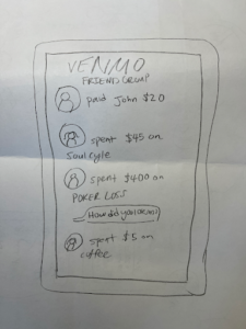 - “Venmo” Idea: Using a Venmo-like app to share purchases within a group, allowing friends to comment on and react to each other’s spending habits.