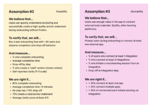 For our second experiment, we focused on the assumption that users see enough value in the app to connect external tools (calendar, Spotify, other learning platforms) to our platform. To run this, at the end of the onboarding process, we prompt users to connect at least one external app to our platform, such as Spotify.