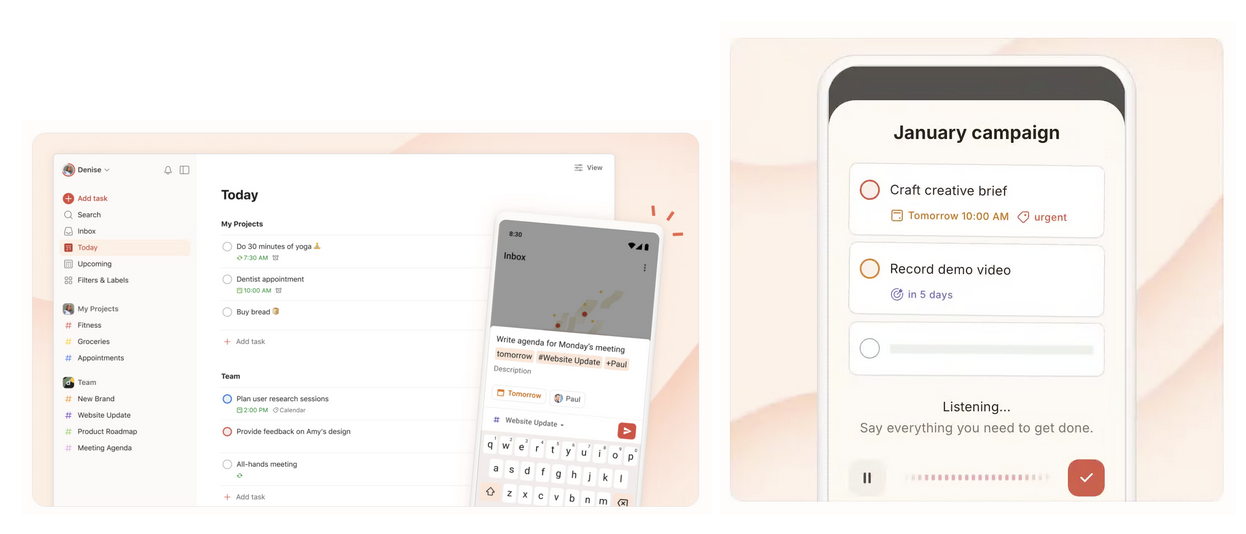 Todoist fulfills the need for a fast, intuitive task manager for personal productivity and light collaboration. It emphasizes quick capture and flexible organization rather than heavy planning, helping users stay consistent and meet deadlines. Its core value is making task management feel natural and low-effort.