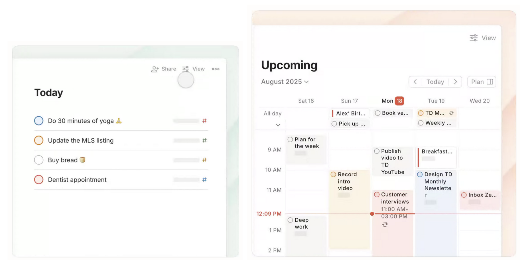 - Task-calendar integration: To-dos with due dates appear on the calendar, bridging planning and execution