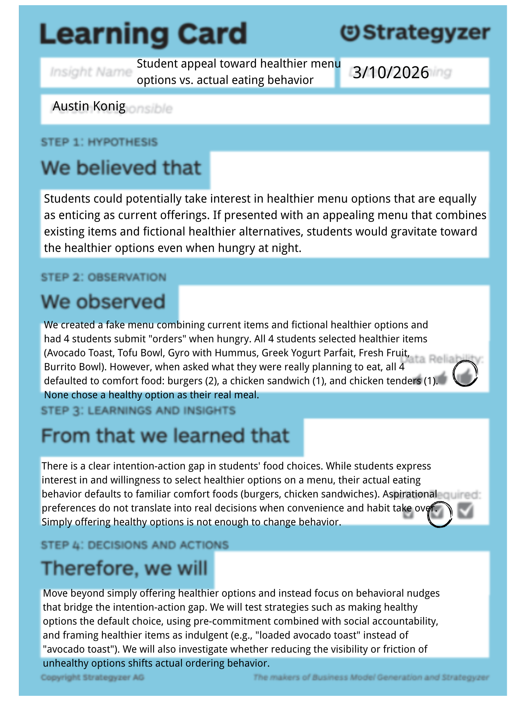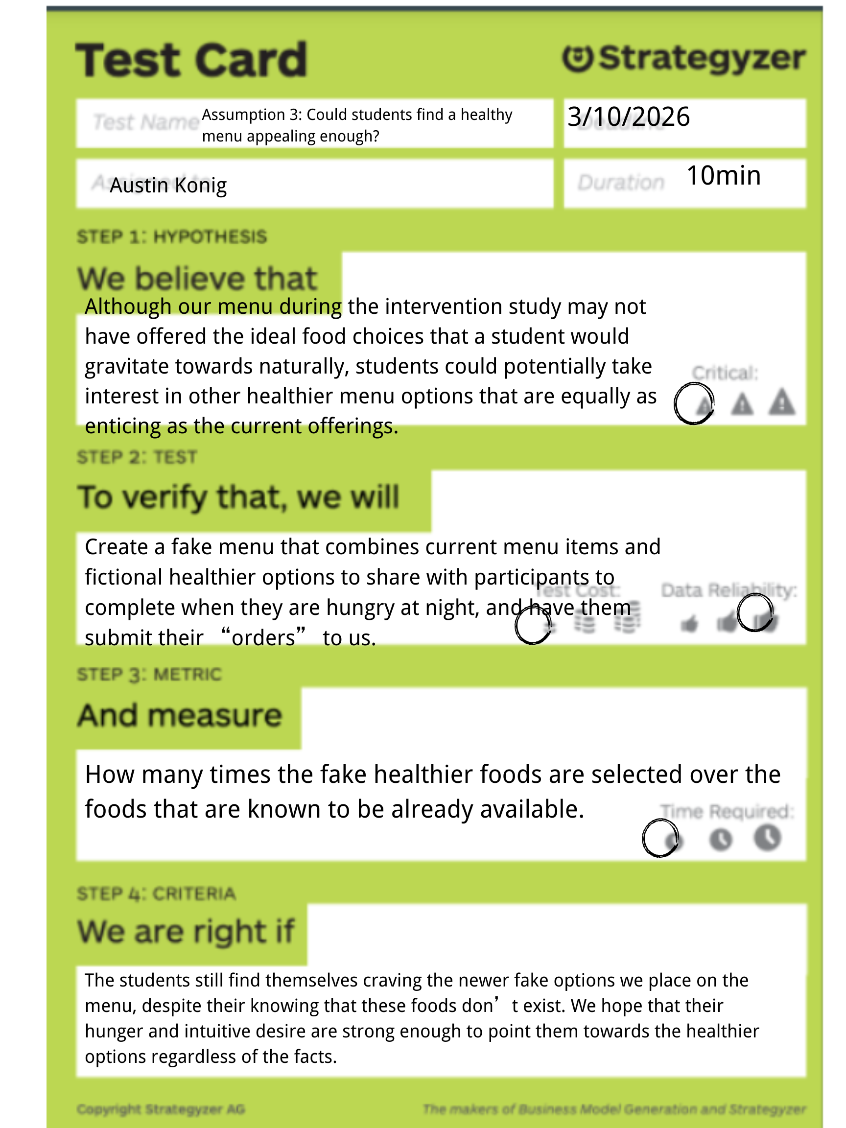 Recruitment Criteria: We recruited students who were willing to participate in a menu study during their typical late-night hours when they were hungry. We specifically sought participants who could compare their aspirational “orders” from a list of healthy, fictional alternatives against their actual planned eating behavior for that night.