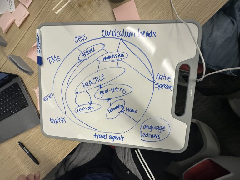 Mapping the system into two layers really helped us see where the real points are in our solution. We realized that content is not the bottleneck. There is already strong evidence that people want to learn languages and may have access to high-quality tools. The core issue is not supply but their behavior.