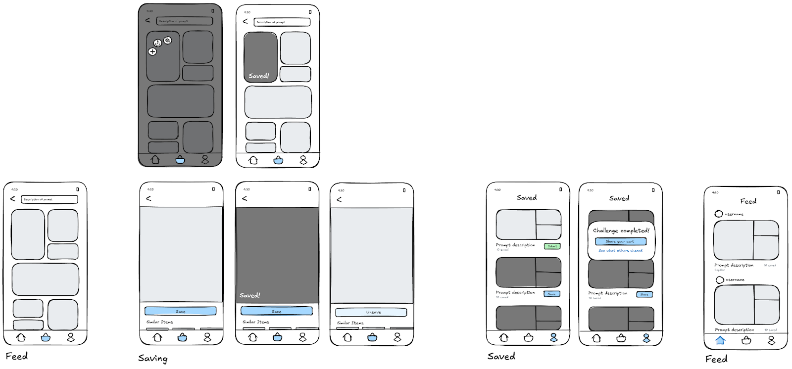 - Justification: Giving users the option to share their boards in a community setting adds an element of social validation and external engagement, similar to how people share their shopping hauls. This reinforces the enjoyment of curating items without needing to own them.