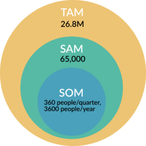 - Within the scope of CS 177, the obtainable market will consist of students studying CS at Stanford. We’re aiming for roughly 10% of students who take CS106A/B, which equates to around 360 people.