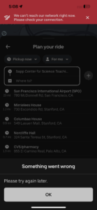 Uber’s approach to error states involves modal dialogs with actionable CTAs like “Continue”/ “OK” or “x” buttons, which can direct users to either move on or try to get in-app help for next steps. The recovery flow relies mostly on manual retry, missing automated fallback, rider compensation credits, or seamless fare persistence. The business cost here is directly seen in lost bookings and suppressed GMV, where each failed trip or payment error risks user abandonment. The potential effect of this is that it can lower conversion rates, which can drive both riders and drivers toward competitors like Lyft, Waymo, etc. This also translates into lost transaction revenue and decreased retention across the platform.
